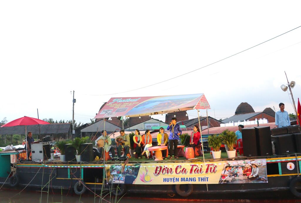 | Une représentation Don ca tài tu dans le canal Thầy Cai, district de Mang Thit, province de Vinh Long (Sud). |