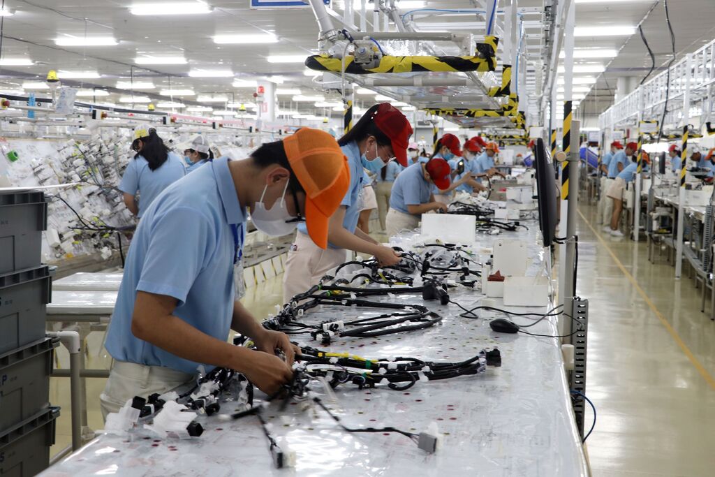 | Dans un atelier de production de la compagnie Furukawa Automotive Systems implantée dans la zone industrielle de Binh Minh, cité municipale de Binh Minh, Vinh Long. |