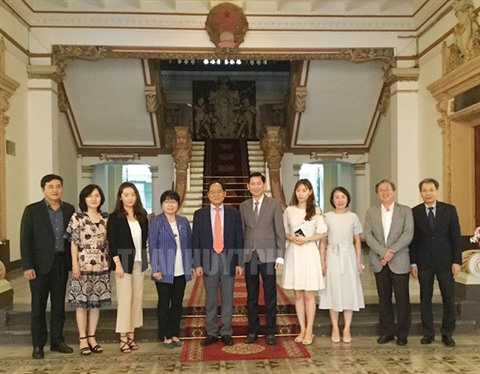 | Le vice-président du Comité populaire municipal de Hô Chi Minh-Ville, Trân Vinh Tuyên (5e à droite), et la délégation de la province sud-coréenne Jeollabuk-do le 26 juin |