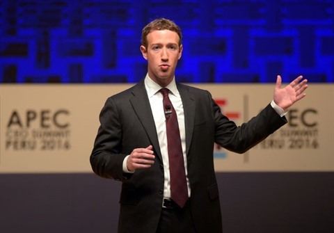 | Le patron de Facebook, Mark Zuckerberg, lors d'un discours à l'occasion du Forum de coopération économique Asie-Pacifique (APEC) à Lima, le 19 novembre 2016. |