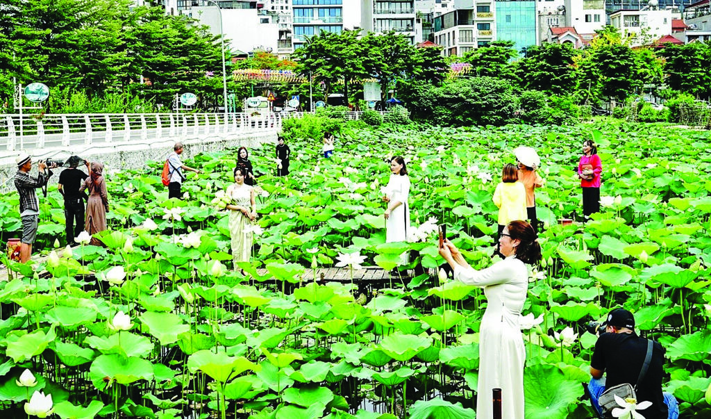 La saison de floraison des lotus au lac de l’Ouest, à Hanoï, atteint généralement son apogée début juin, mais cette année, certaines espèces ont commencé à s’ouvrir dès la mi-mai, attirant de nombreux visiteurs désireux de les admirer et de les photographier.