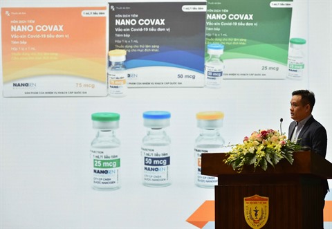 | Présentation du vaccin Nano Covax, en décembre 2020, à Hanoï. |