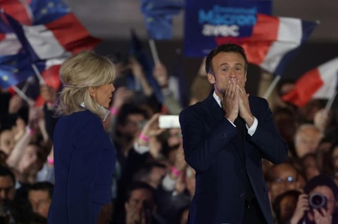 | Le président Emmanuel Macron le soir de sa réélection, à Paris le 24 avril. |