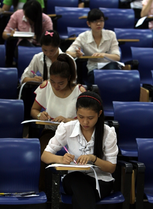 | Des bacheliers au concours d’entrée de l’École supérieure normale de Hô Chi Minh-Ville en juillet dernier. |