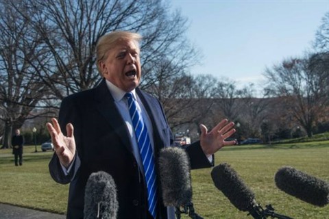 | Donald Trump s'exprime devant la presse sur les pelouses de la Maison Blanche à Washington avant son départ pour Camp David, le 16 décembre |