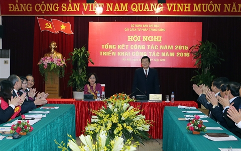 En 2015, le Comité central de pilotage de la réforme judiciaire a fait le bilan de ses activités pour la période 2011-2016, élaboré le plan pour la période 2016-2020, étudié, donné ses avis sur 17 projets et rapports soumis par les organes centraux concernés, rédigé 20 rapports et travaux de recherche.