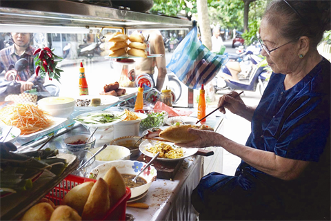 | Nguyên Thi Lôc est surnommée la «reine du banh mi» par les touristes étrangers. |