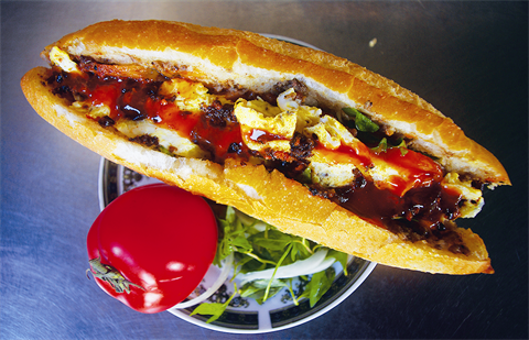 À première vue, le banh mi de Nguyên Thi Lôc est semblable aux autres. Pour voir la différence, il faut le goûter et apprécier la texture particulière du pain, le goût singulier de la viande, des œufs, etc.