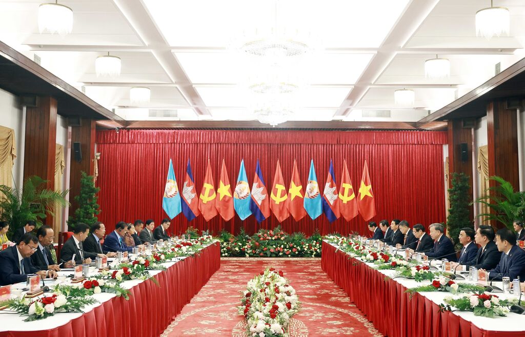 | Rencontre de haut niveau entre le Bureau politique du Parti communiste du Vietnam et la Permanence du Parti du peuple cambodgien. |