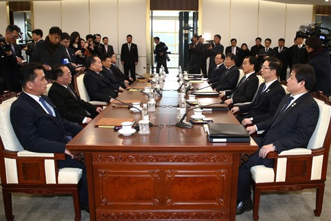 | Vue générale de la rencontre de haut niveau inter-coréenne à Panmunjom, le 9 janvier. |