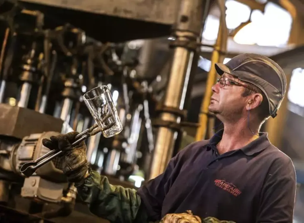 | Un salarié du verrier Arc travaille, le 27 juin 2016 à Arques (Pas-de-Calais). |
