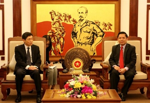 | Le ministre vietnamien des Transports et des Communications, Nguyên Van Thê (droite), et l’ambassadeur sud-coréen au Vietnam, Lee Hyuk, le 5 décembre à Hanoï. |