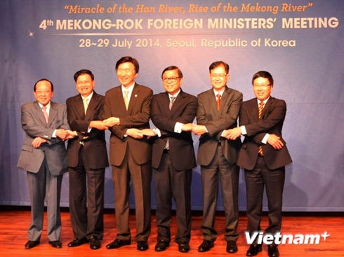 | Le vice-Premier ministre et ministre vietnamien des AE, Pham Binh Minh (1er, droite), lors de la 4e Conférence ministérielle République de Corée - Mékong. |