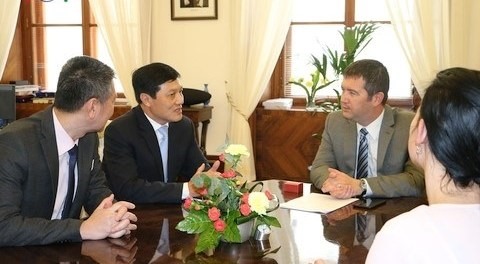 | L'Ambassadeur du Vietnam en République tchèque, Truong Manh Son (2e à gauche), lors de sa rencontre avec le président de la Chambre des députés tchèque, Jan Hamacek (droite). |