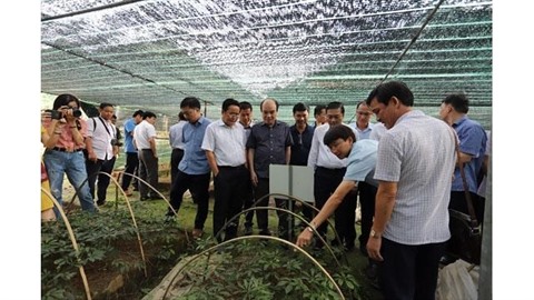 | Les délégués visitent le modèle de culture des ginsengs Puxailaileng à Nghê An. |