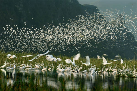 Les amoureux de la nature ne seront pas déçus en venant à Vân Long. Le site abrite 39 espèces animales et 722 végétales, dont plusieurs figurent dans le livre rouge des espèces en voie d’extinction. Une centaine d’espèces d’oiseaux y cohabitent. Au crépuscule, des volées d’oiseaux se dirigent en direction des marais et des rizières à la recherche de nourritures.