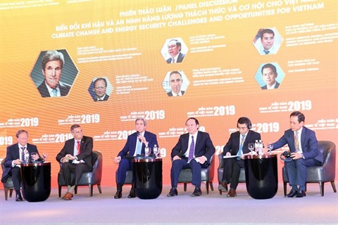 | Des intervenants au séminaire thématique "Résilience au changement climatique et consolidation de la sécurité énergétique pour garantir le développement durable" à Hanoi. |