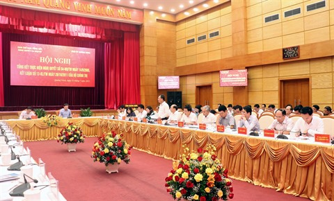 | Réunion bilan de la mise en œuvre de la Résolution N°54-NQ/TW sur le développement socio-économique et la garantie de la défense et la sécurité dans le delta du fleuve Rouge jusqu'en 2010 et l'orientation 2020, le 11 juillet à Quang Ninh. |