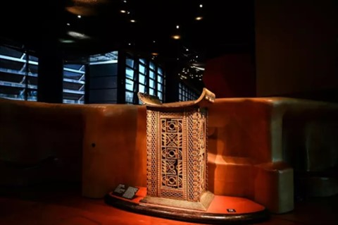 | Un trône de l'ancien royaume d'Abomey exposé au musée du Quai Branly, le 10 septembre à Paris. |