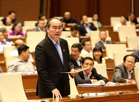 | Nguyên Thiên Nhân, député de la province de Trà Vinh (Sud), prend la parole, le 3 novembre à Hanoï dans le cadre de la 2e session de l'AN. |