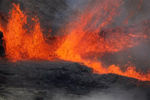 | Éruption volcanique au Piton de la Fournaise à La Réunion, le 2 avril. |