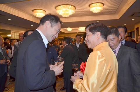 | L'ambassadeur du Vietnam au Japon, Nguyên Quôc Cuong (droite), lors de la célébration de la Fête nationale vietnamienne, le 2 septembre, à Tokyo. |