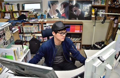 | L’artiste sud-coréen de «webtoons», Seok-Woo, dans son bureau à Bucheon, à l’ouest de Séoul. |