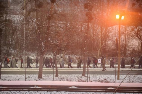 | Des migrants et des réfugiés traversent la frontière entre Autriche et Slovénie, le 5 janvier à Sentilj. |