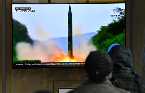 | Des habitants sud-coréens suivent le tir des missiles de la RPDC via un écran à la gare de Séoul. |