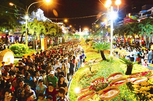 | La rue florale attire de nombreux visiteurs vietnamiens et étrangers. |