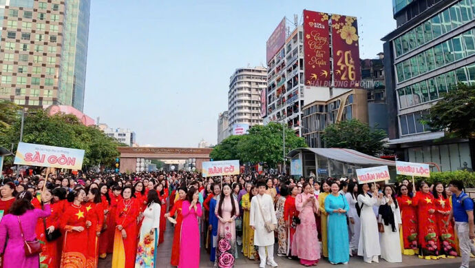 Du 6 au 8 mars, les habitants et les visiteurs peuvent essayer gratuitement des áo dài ainsi que d’autres costumes traditionnels vietnamiens et immortaliser des moments mémorables au cœur du centre-ville de Hô Chi Minh-Ville. Il s’agit de l’une des 17 principales activités du Festival de l’áo dài de Hô Chi Minh-Ville 2026.