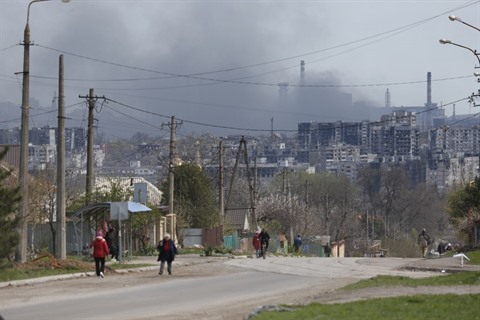 | Photo prise le 21 avril montrant l'usine d'Azovstal dans la ville portuaire de Marioupol, en Ukraine. |