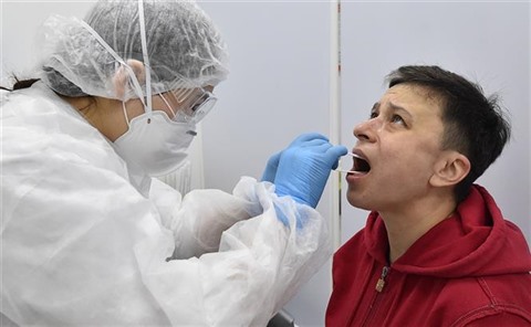 | Prélever l'échantillon pour les tests du COVID-19 à Moscou, le 2 mai. |