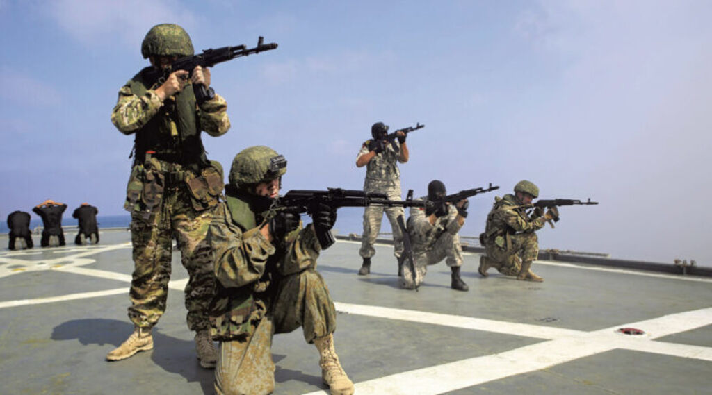 | Des soldats russes et iraniens participent à un exercice naval conjoint de la Marine russe. |