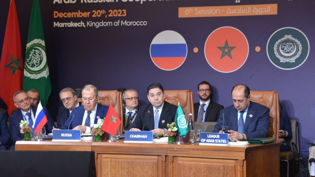 | Lors de la la VIe session du Forum de coopération Russie - Monde arabe au niveau des ministres des Affaires étrangères, le 20 décembre à Marrakech (Maroc). |