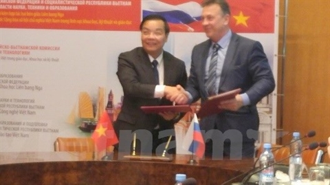 | Le vice-ministre vietnamien des Sciences et des Technologies, Chu Ngoc Anh (gauche), et le vice-ministre russe de l’Éducation et des Sciences, Veniamin Kaganov. |