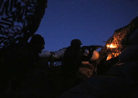 | Un soldat ukrainien fait feu sur des sépararistes durant des combats de nuit dans la région de Donetsk, en Ukraine, le 14 novembre. |