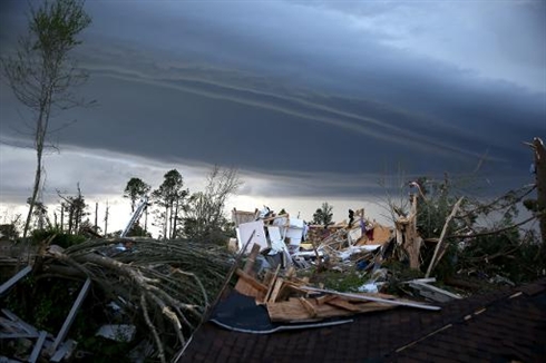 | La ville de Tupelo après le passage d'une tornade le 29 avril 2014 aux États-Unis. |