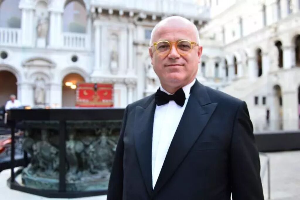 | Fortunato Ortombina, alors directeur artistique de la Fenice devant le Palazzo Ducale à Venise. |