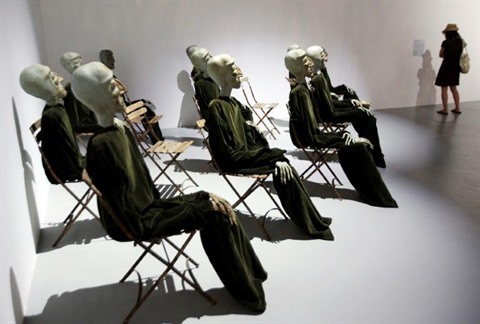 | L'œuvre de l'artiste suisse Eva Aepppli, "Groupe de 13" (hommage à Amnesty International), lors de l'exposition "XXL, Extra Large" en juillet 2012 au Grimaldi Forum Monaco. |