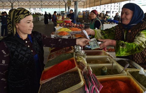 | Une femme achète des épices pour préparer le plov, le plat national ouzbek, dans un marché à Termez, à quelque 800 km de Tachkent. |