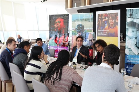 | Rencontre entre la secrétaire générale de l’OIF, Michaëlle Jean, et les jeunes reporters francophones à Gangneung, le 8 février. |