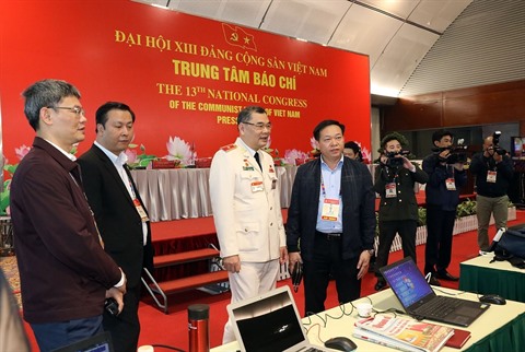 | Tô Ân Xô (2e à droite) au Centre de presse au service du XIIIe Congrès national du Parti, le 29 janvier. |