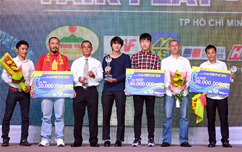 Pham Thanh Luong (Club Hanoi T & T) s’est classé deuxième. Lors de la demi-finale aller de la Coupe AFF Suzuki 2014 en Malaisie, il a donné des pansements à un supporter vietnamien blessé par des violences dans les tribunes.
