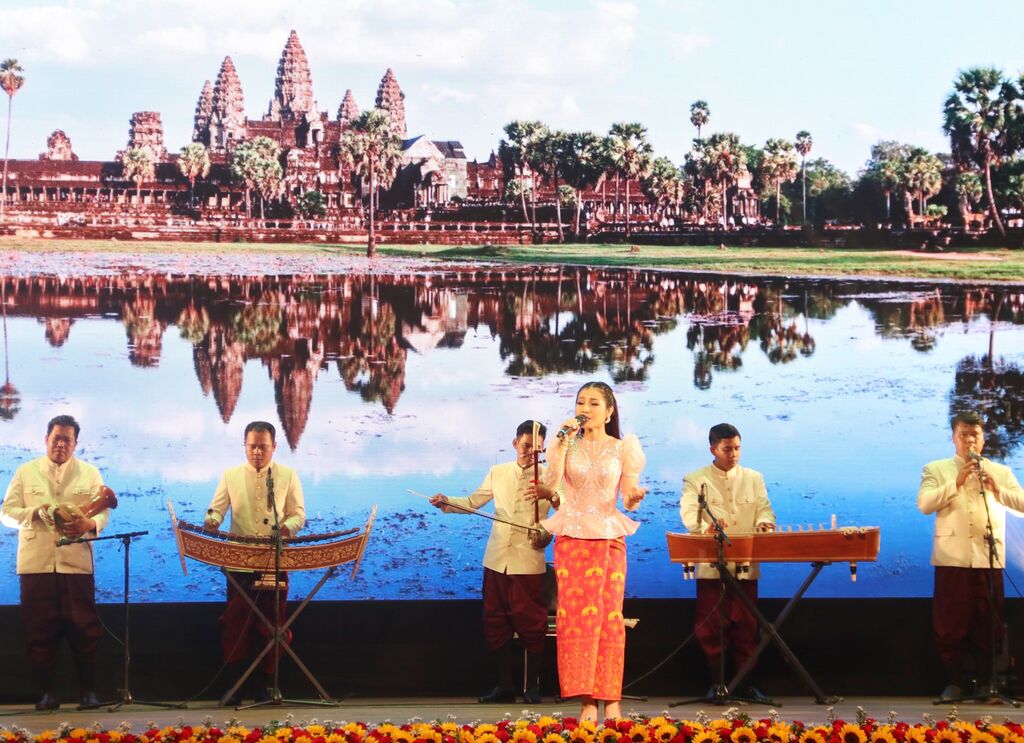 | Une interprétation des artistes cambodgiens lors de la cérémonie d'ouverture. |