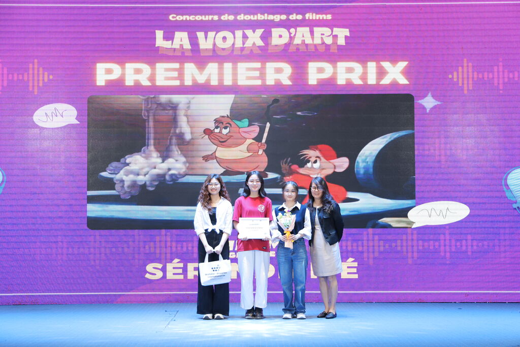 Résultats : le 1er prix a été attribué à un groupe d’étudiants (Nguyên Phan Hà Anh, Thân Thùy Linh et Nguyên Mai Huong) pour le doublage du film Cendrillon. Les 2e prix ont été décernés à un groupe d'étudiantes (Nguyên Thi Minh Hiên, Dô Thi Diu et Lê Thu Thao) pour l’œuvre de doublage du film Les noces funèbres, à un groupe d’étudiantes de HANU (Dinh Hà Phuong et Nguyên Thu Hang) pour le film Tâm Cam. Hoàng Minh Quân (pour le film Miracle), Nguyên Binh Chi (pour le film Chip Chip) et Nguyên Khanh Linh (pour le film Dung dôt - Ne brûle pas ! en français) ont remporté le 3e prix. Sans compter le prix du public pour le groupe d’étudiants (Nguyên Hoàng Gia Bao et Trân Thi Xuân Mai) pour le film Alice au pays des merveilles. Tous les gagnants sont étudiants à HANU. La cérémonie de remise des prix du concours a eu lieu le 26 mars dans l’amphithéâtre de l’Université de Hanoï.
