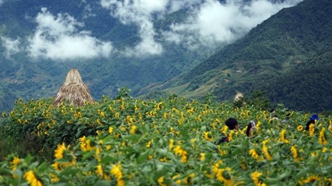 Située à l’entrée de la place de la gare de la téléphérique Fansipan relevant du secteur touristique Sun World Fansipan Legend, la colline de tournesols d’un millier de mètres carrés est en pleine floraison avec la couleur jaune vive, attirant des visiteurs à cette vallée fleurie au pied de la montagne Hoàng Liên.