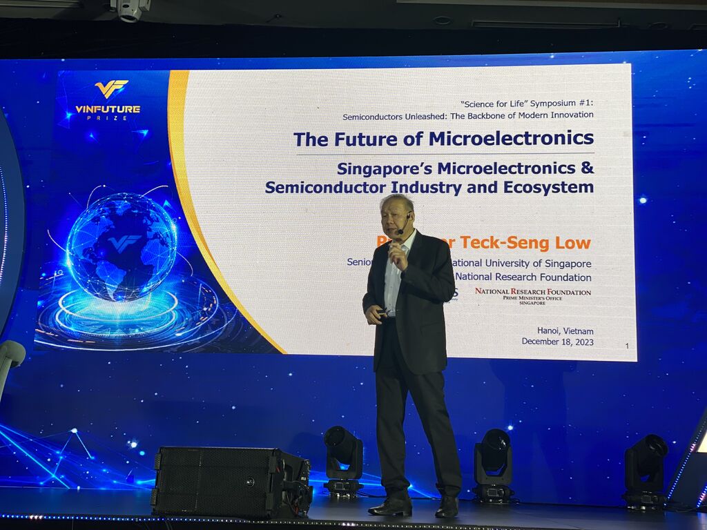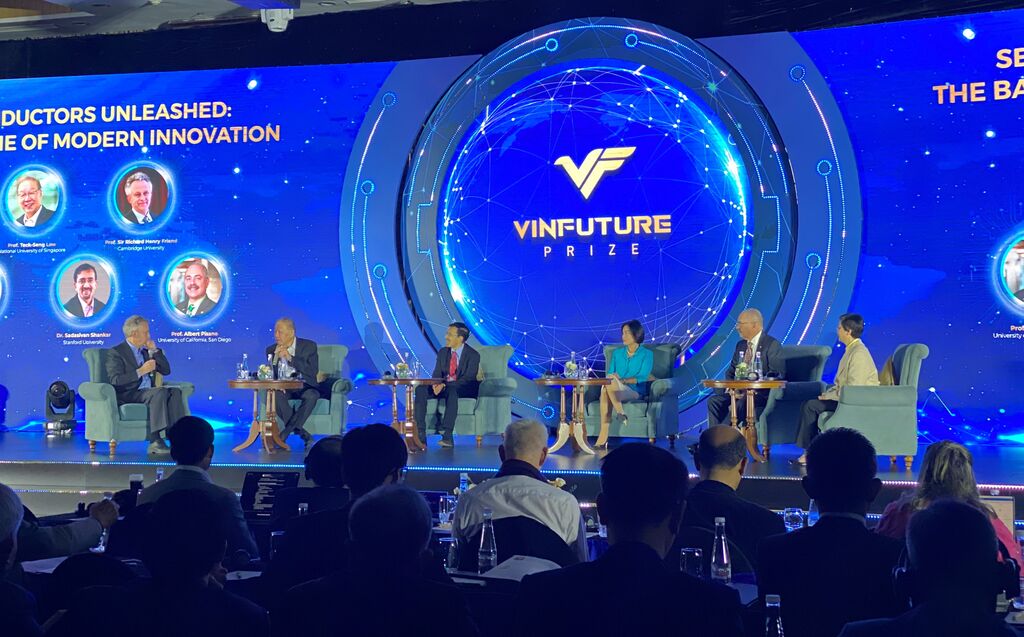Lors de la première session, au matin du 18 décembre, le Professeur Richard Henry Friend de l’Université de Cambridge (Royaume-Uni), président du Conseil du prix VinFuture et modérateur du débat, a mis l’accent sur le secteur très prometteur des semi-conducteurs et leur utilisation extrêmement vaste.