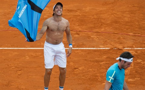 | L'Argentin Carlos Berlocq fête la victoire en double face à l'Italie en Coupe Davis, le 4 février à Buenos Aires. |