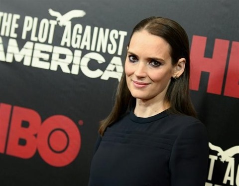 | L'actrice Winona Rider à la première de la série "The Plot Against America", le 4 mars 2020 à New York. |